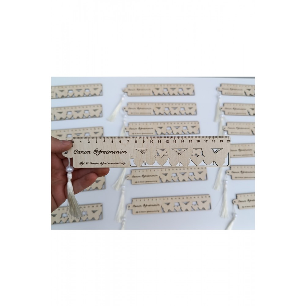 24 Kasım Öğretmenler Gününüze Özel Cetvel Detaylı Ahşap Kitap Ayr…