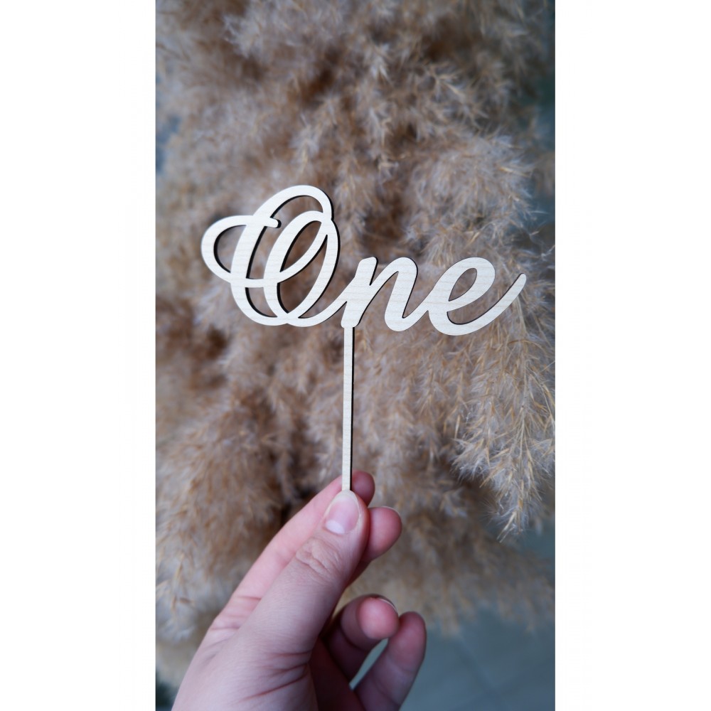 Bir Yaş One Yazılı Ahşap Pasta Süsü