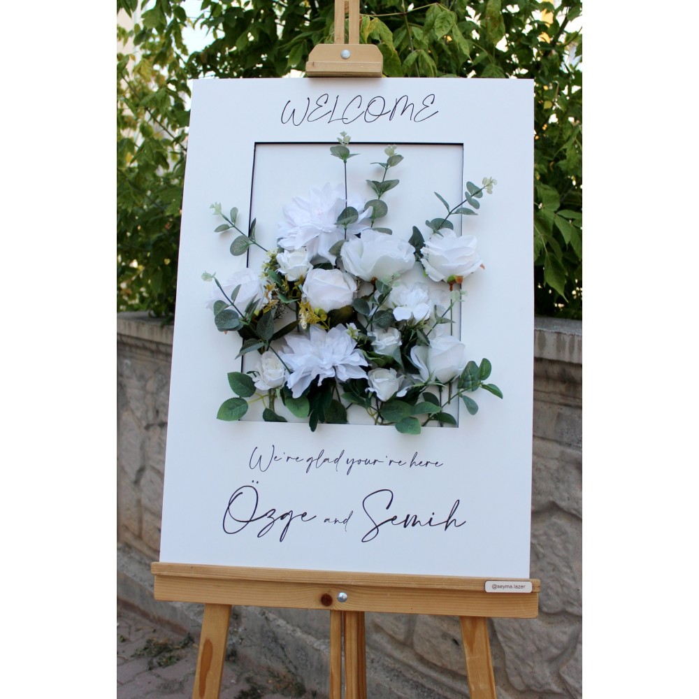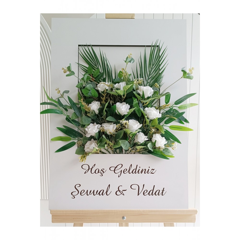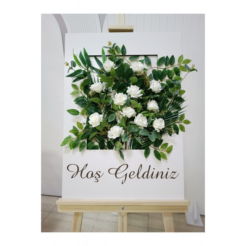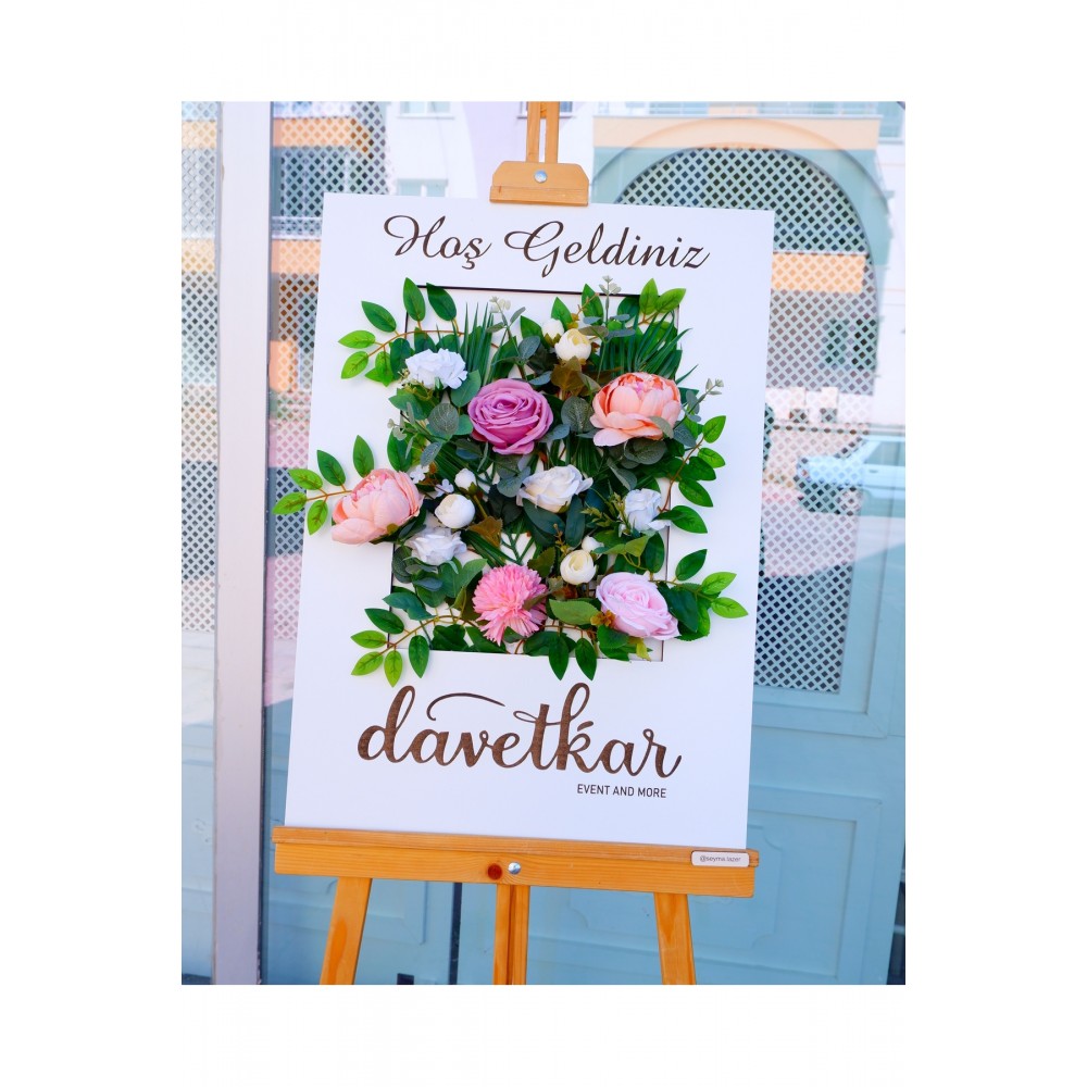 Çiçekli Ahşap Nişan Karşılama Panosu