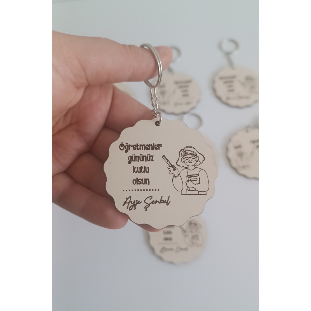Öğretmenler Günü Öğretmen figürlü 5'li Ahşap Anahtarlık