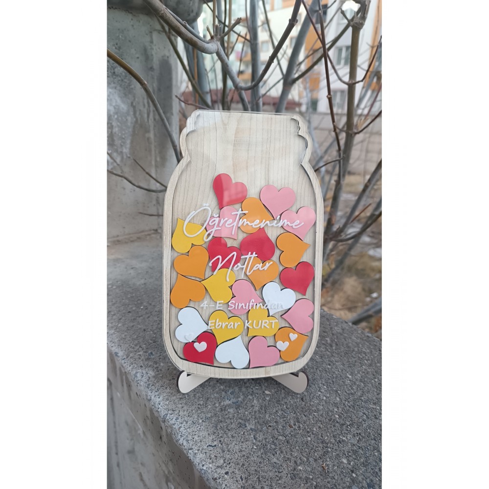 Öğretmenler Günü Kalpli Pullu Öğretmenime Notlar Kavanozu